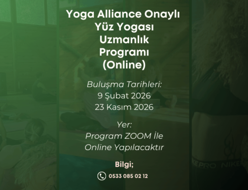 Yüz Yogası Online Eğitim tarihi ve saati1. Oturum 9 Şubat 20262. Oturum 23 Şubat 2026Saatler 18:00-23-30Online Zoom Eğitim Program Akışı1. Gün-Yüz Yogası nedir-Yüz Yogasının faydaları nelerdir-Yüz Yogası İle İlgili Sıkça Sorulan Sorular-Yüz Masajı nedir, yüz yogasından farkı nelerdir?-Beden Farkındalığı ve Merkezlenme-Yüz Yogası Egzersizlerini Uygulama 2. Gün-Beden Farkındalığı ve Merkezlenme-Yüz Yogası Pratiği-Yüz Kasları ve Fonksiyonları-Meridyenler ve